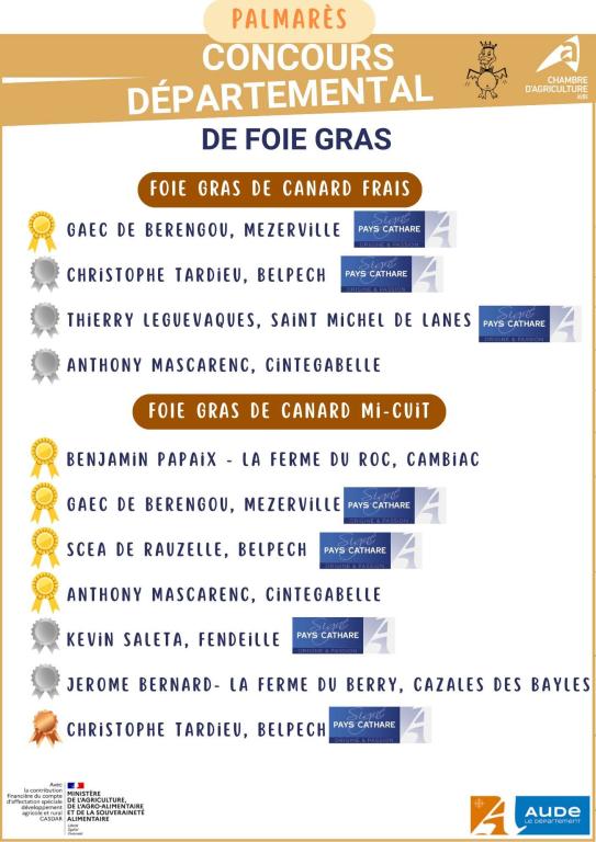 Concours départemental de foie gras Pays Cathare -Edition 2025